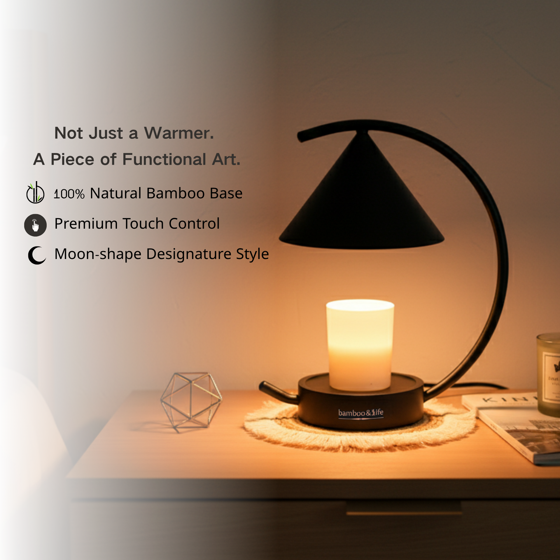 Elevate Your Home with the Bamboo&Life Moonlit TouchOn Candle Warmer.
