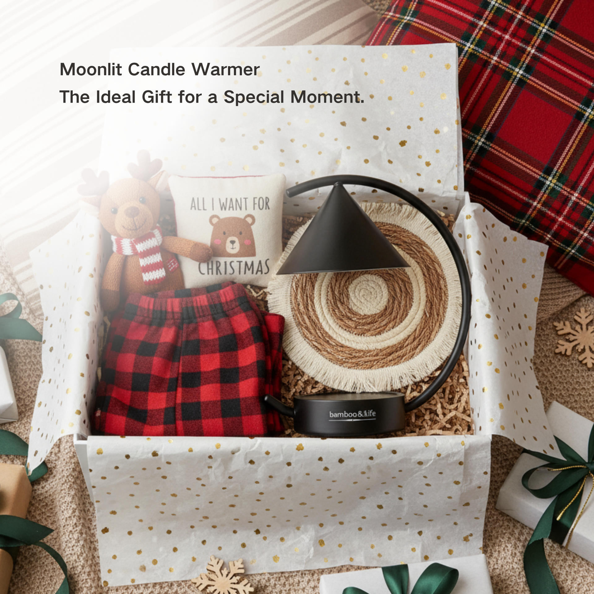 - THE COMPLETE 4-PIECE ECO-LUXURY GIFT SET:Give a gift you’ll be proud of. The Moonlit warmer arrives in a premium box and includes a Free Handmade Placemat and TWO GU10 Bulbs. You are giving a complete, thoughtful, and long-lasting experience right out of the box. The perfect housewarming, Mother’s Day, or birthday gift.